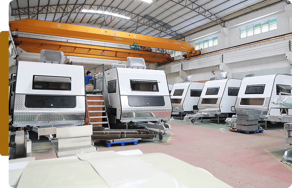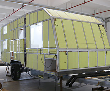 We focuses on developing lightweight, high-performance RV materials for real-world use. We use advanced materials such as aluminum composites, fiberglass (FRP) with XPS insulation, and Thermo-lite structural boards to achieve the right balance of strength, weight, and durability.