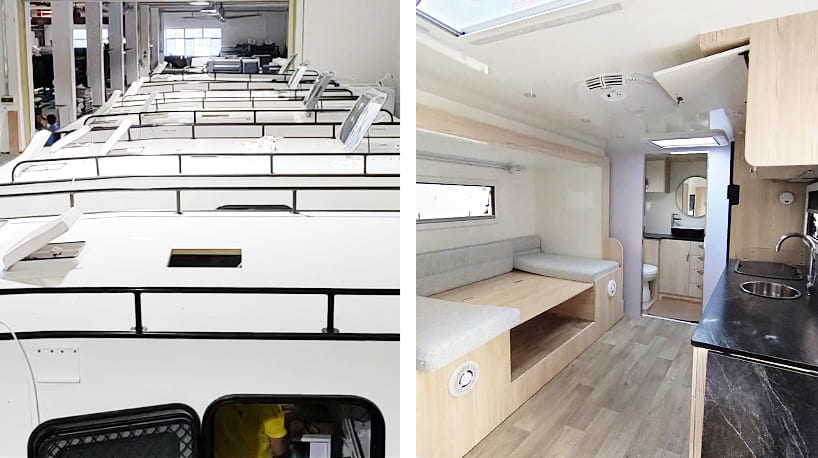 Explore our latest models of Travel Trailers, Truck Campers, Camper Trailers, and Motorhomes in our spacious 2,000m² showroom. You’ll have the chance to see our high-quality products up close, featuring the latest innovations in design and functionality.