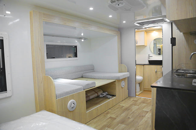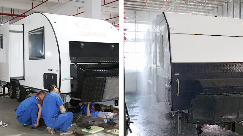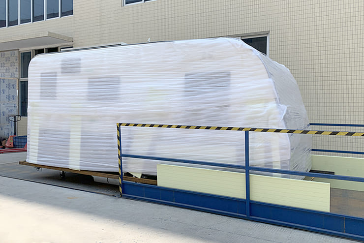 Before shipment, every unit undergoes a full inspection — cabinets locked, systems secured, and all loose items fixed. Exterior parts such as windows, doors, and awnings are reinforced to ensure safe delivery upon arrival.