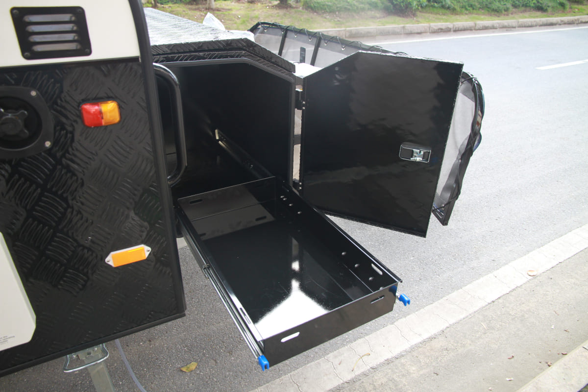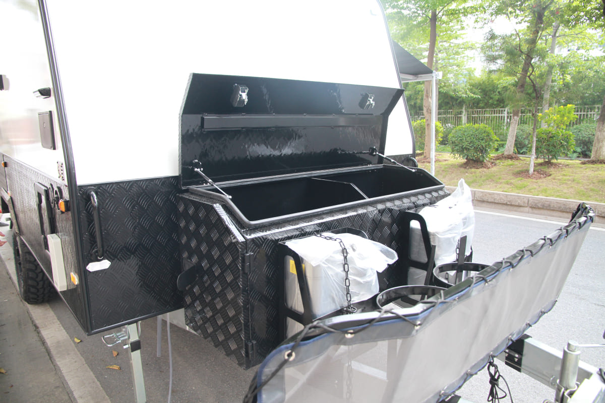 - Secure cargo protection: Reinforced compartments with lockable lids shield belongings from rain/dust.