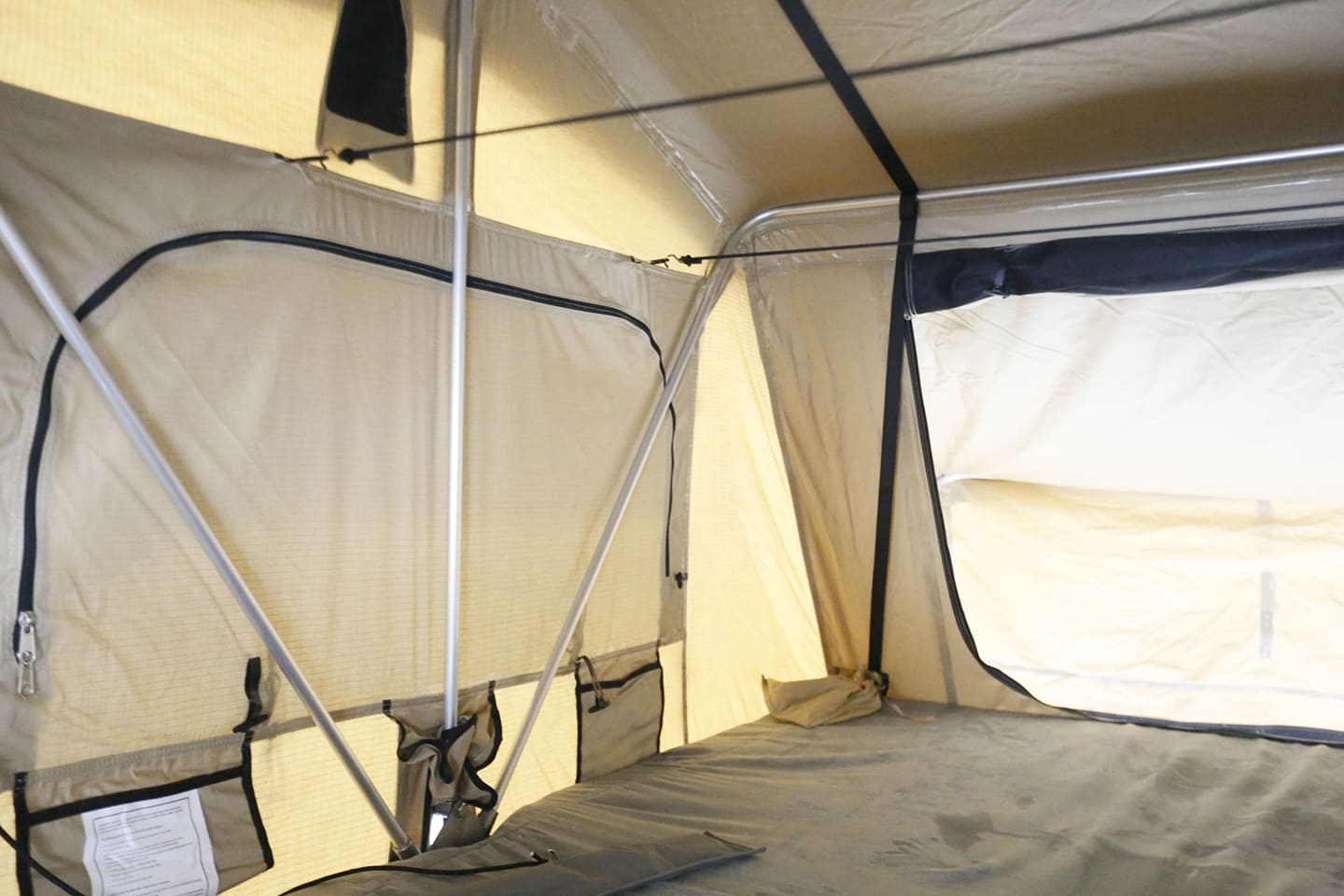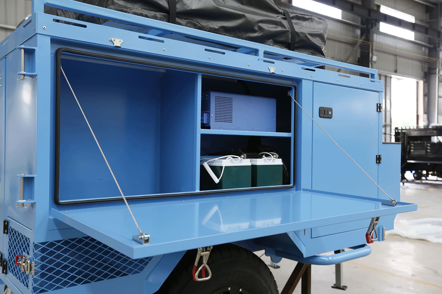 - It functions as an equipment hauler by day and a living space by night.